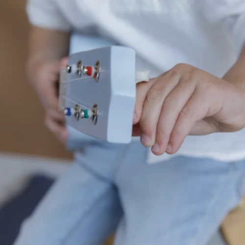 This cute guitar is a wonderful instrument to accompany children on their journey to become a singer-songwriter! They will be singing along as they play the guitar, which stimulates their creativity and coordination skills. Strike the right chords and develop your musical talent!